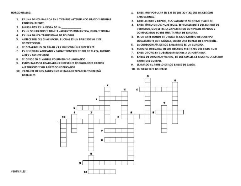 Para Secundaria Crucigrama De Danza / Actividades Ed Financiera 2 Mtra Denise Fuentes